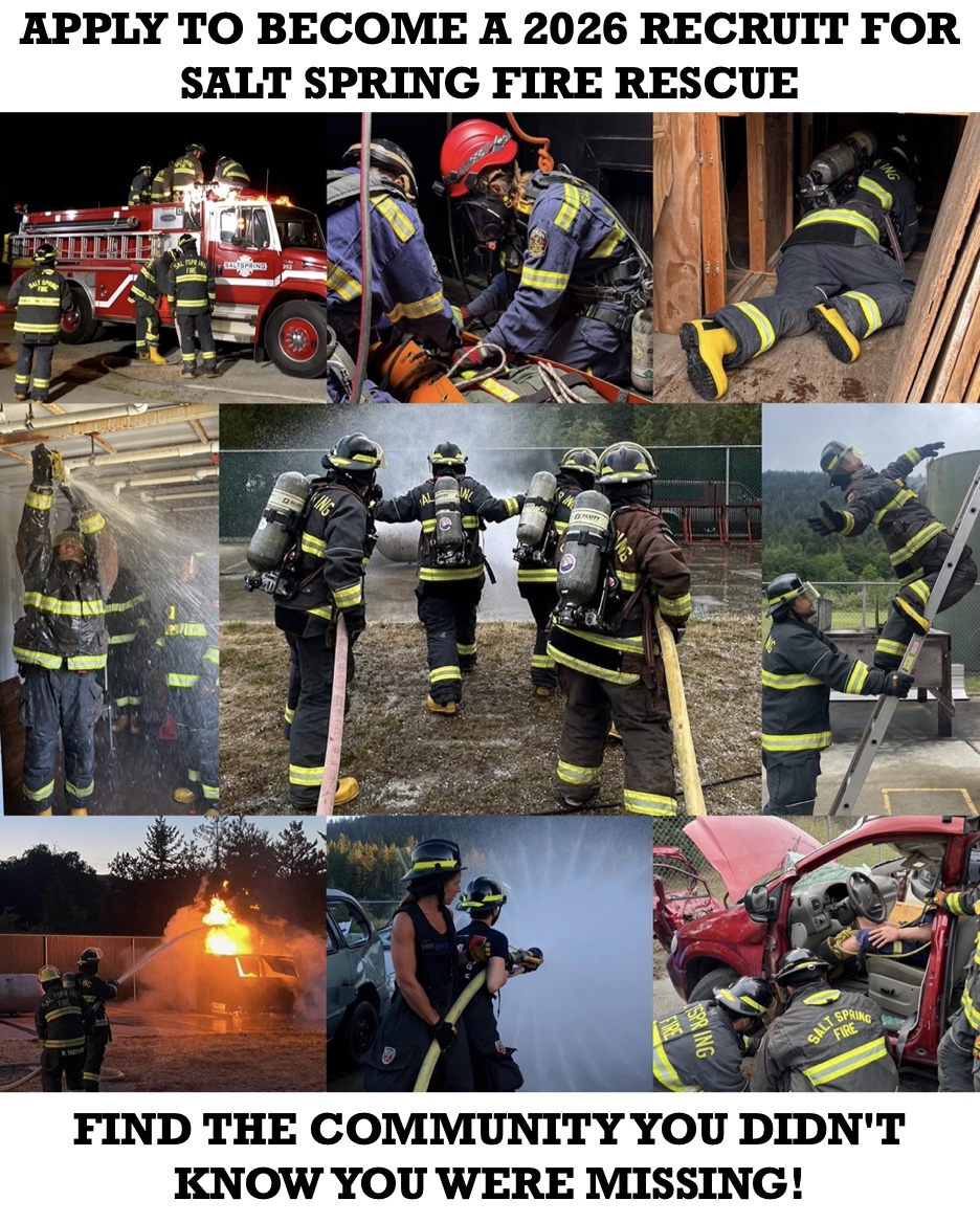 And numerous other courses offered within the department. Satisfying and Rewarding, firefighting offers constant challenges both personally and professionally. Being a part of Salt Spring Island Fire/Rescue will change your life.